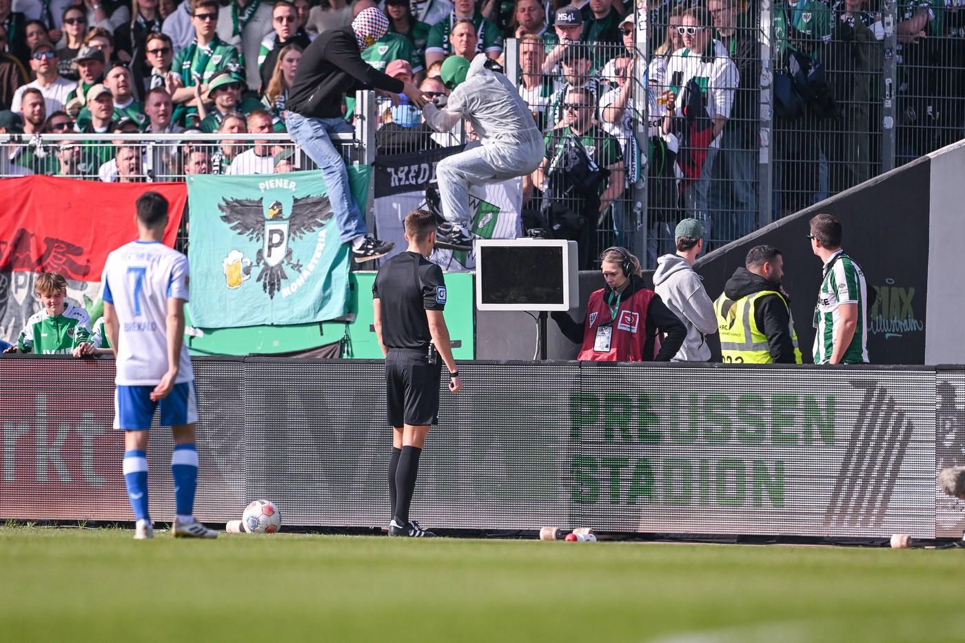 “Maskirani gledalac s tribine s najvatrenijim navijačima protupravno je ušao u prostor uz teren i isključio tehničku opremu. Preussen Münster žali zbog incidenta i učinit će sve što je u našoj moći da identificira i privede počinitelja pravdi”, poručili su iz kluba.