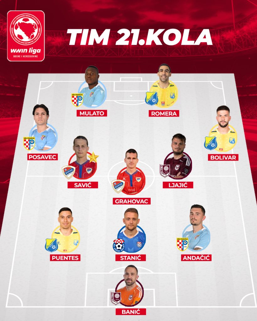 Redakcija TV Arena Sport i kompanija WWin donose vam idealni tim 21. kola WWIn lige Bosne i Hercegovine.
