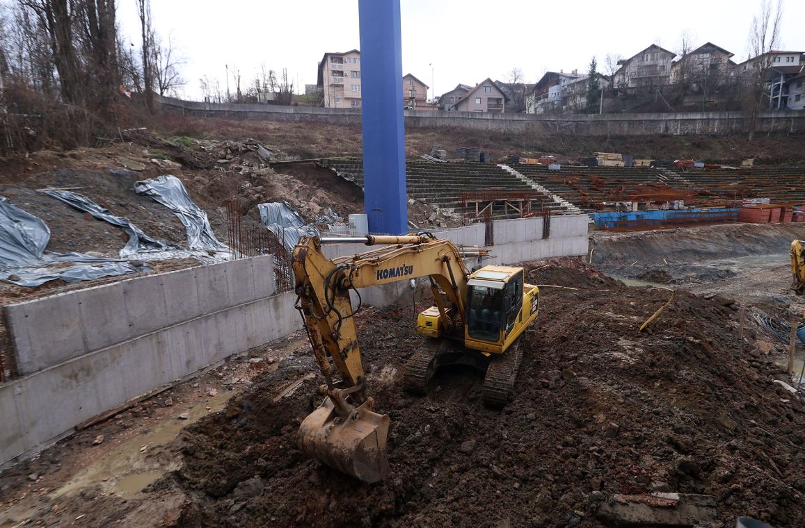 Nakon kraće pauze uzrokovane snijegom i niskim temperaturama, danas su nastavljeni radovi na izgradnji južne tribine stadiona Grbavica.